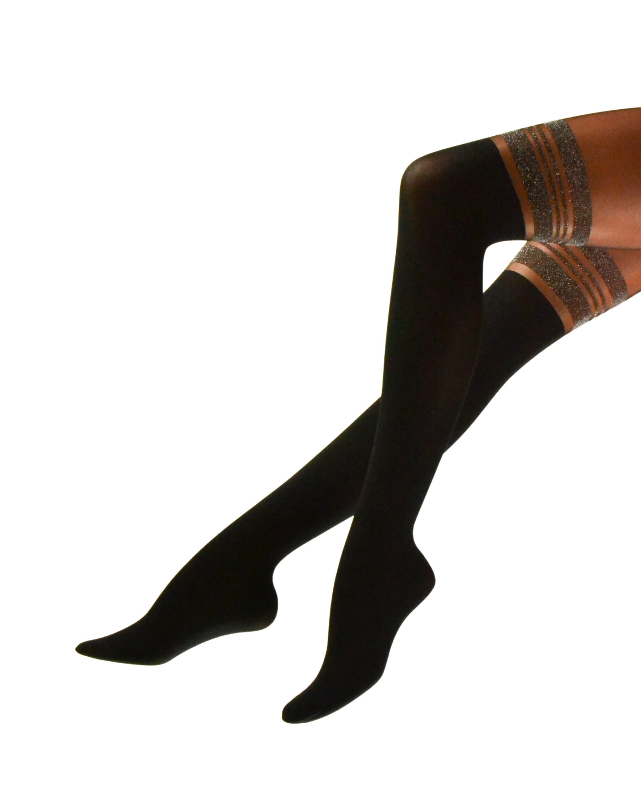Ciorapul are un design elegant, cu imitație jambiere.